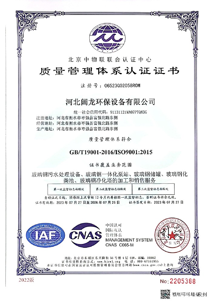 河北闊龍環(huán)保設(shè)備有限公司發(fā)祥于京畿之地、董子故里一一河北省棗強(qiáng)縣,位于環(huán)渤海經(jīng)濟(jì)圈和環(huán)首都經(jīng)濟(jì)圈的”黃金十字交叉處”,緊臨衡大公路、京九鐵路,距大廣高速10公里,地理位置優(yōu)越。設(shè)備先進(jìn),技術(shù)力量雄厚,能夠獨(dú)立進(jìn)行玻璃鋼環(huán)保系列產(chǎn)品的研發(fā)設(shè)計(jì)、生產(chǎn)和安裝維修服務(wù),已發(fā)展成為華北研發(fā)實(shí)力強(qiáng)、技術(shù)力量雄厚的玻璃鋼環(huán)保企業(yè)。公司產(chǎn)品主要有 玻璃鋼水處理系列:玻璃鋼一體化泵站,玻璃鋼生活污水提升泵站,一體化污水處理設(shè)備, 玻璃鋼除臭系列:玻璃鋼生物除臭設(shè)備,玻璃鋼污水池蓋板; 玻璃鋼容器系列:立式罐、臥式罐、運(yùn)輸罐、壓力罐、發(fā)酵罐、活性炭過(guò)濾罐、攪拌罐、加藥罐、玻璃鋼化糞池、現(xiàn)場(chǎng)纏繞大型罐等; 塔器系列:脫硫脫硝塔、氨氮塔、大型脫硫塔內(nèi)外件、除塵塔、活性炭吸附塔、酸霧吸收塔、臭氧接觸培、氨氮吹脫塔、生物除臭培、高能離子塔、氯化氫吸收塔等; 玻璃鋼管道系列:夾砂管道、頂管、高壓管、電纜···【詳細(xì)介紹】